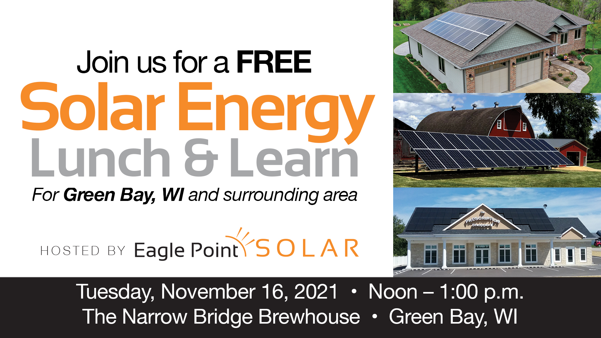 Eagle Point Solar wants to invite you to a Free Solar Energy Lunch & Learn to discuss solar technology, learn about the equipment, and evaluate the incentives which are currently available.